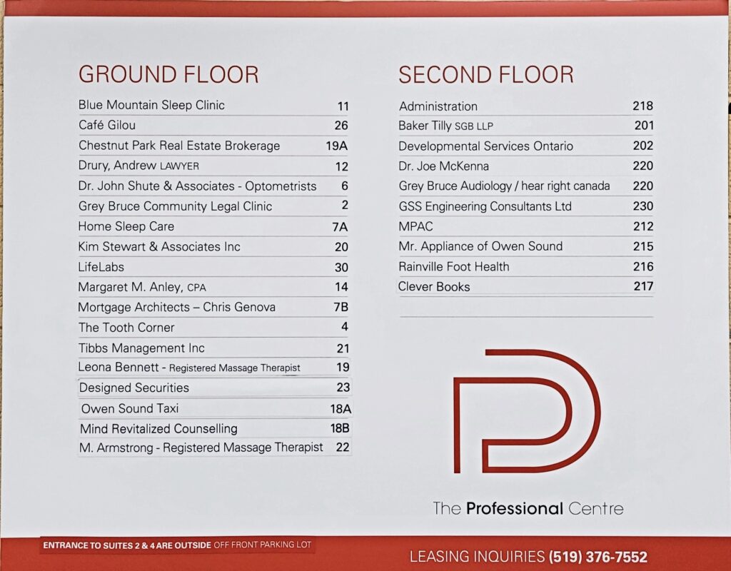 It’s a short trip to all that downtown has to offer, including restaurants, shopping and the harbour. The Professional Centre features a variety of suites, with lots of location and square footage options. A community hub, filled with tons of great local businesses. Check out our floorplans to view available units. Big or small, contact us to discuss why The Professional Centre is the right fit for your business.